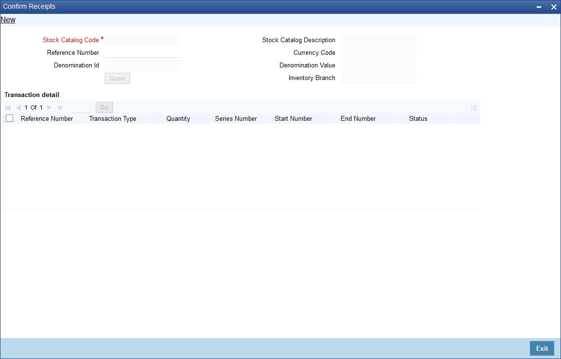 You can query for and retrieve the stocks to be confirmed / rejected based on the Stock Catalog Code, Denomination ID and Reference Number.