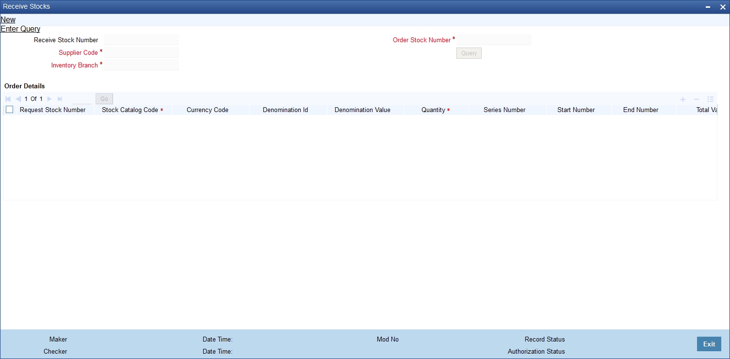 Since stocks are received against purchase orders, this screen accepts the order stock number as input.