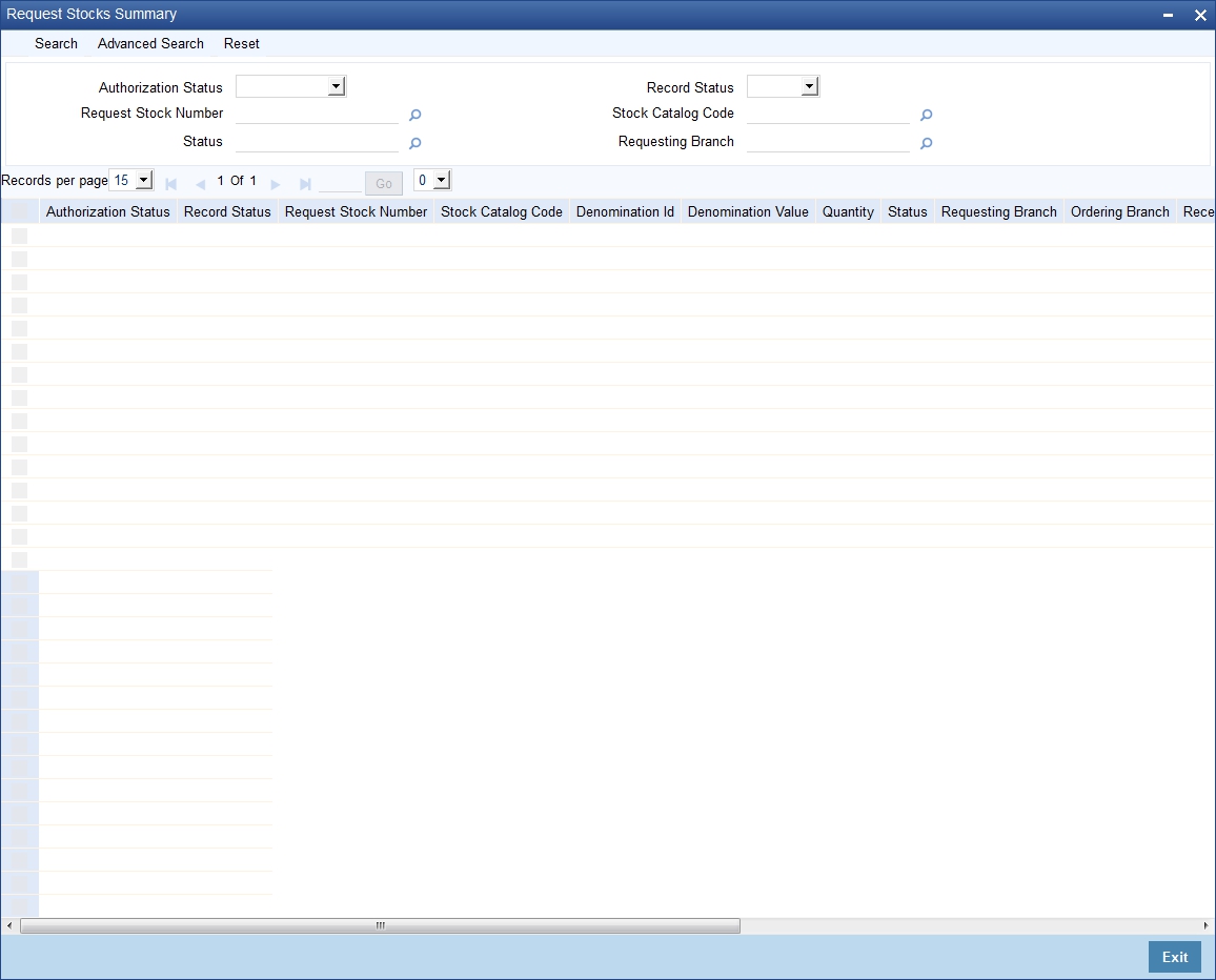 You can use the ‘Request Stocks Summary’ summary screen to query for Request Stocks records by specifying the following parameters:
