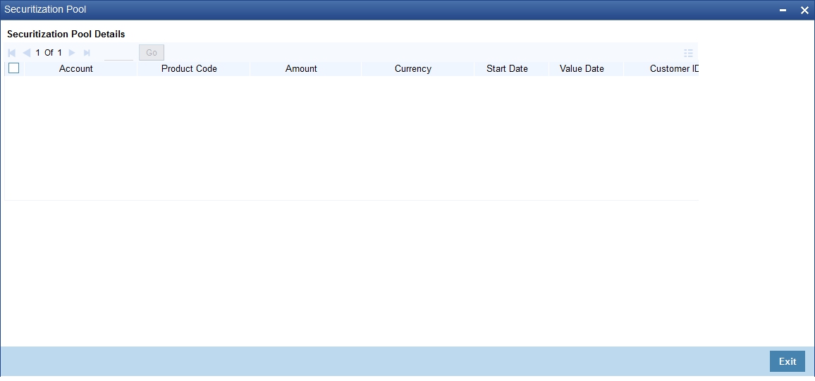 Oracle FLEXCUBE provides an option to view the underlying finance contracts when sale, amendment and buyback transactions are processed (for the amendment event, system displays the newly added/removed finance accounts from the pool).