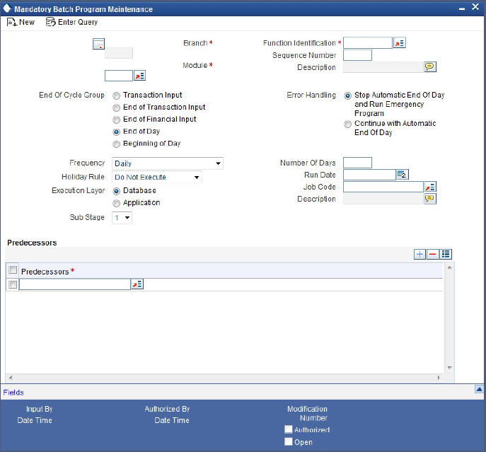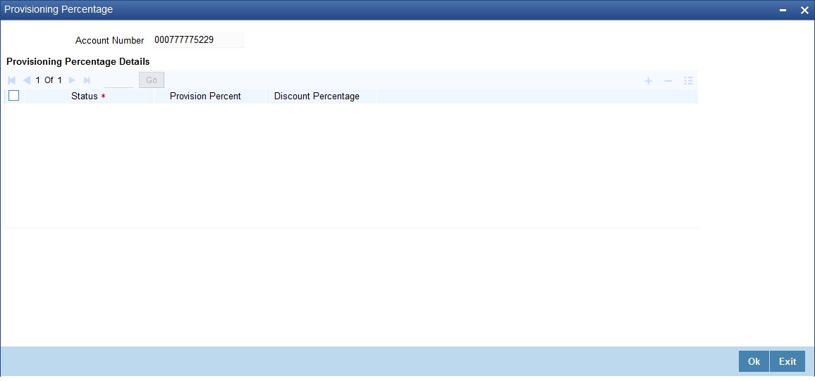 The frequency you define here is only applicable if you have indicated individual account-wise status processing for accounts in the Branch Parameters. If you have indicated status processing at Group/CIF level, then the provisioning batch process executes at the frequency maintained in the ‘Branch Parameters’ screen for your branch, and not at the frequency maintained in the Account Classes screen.