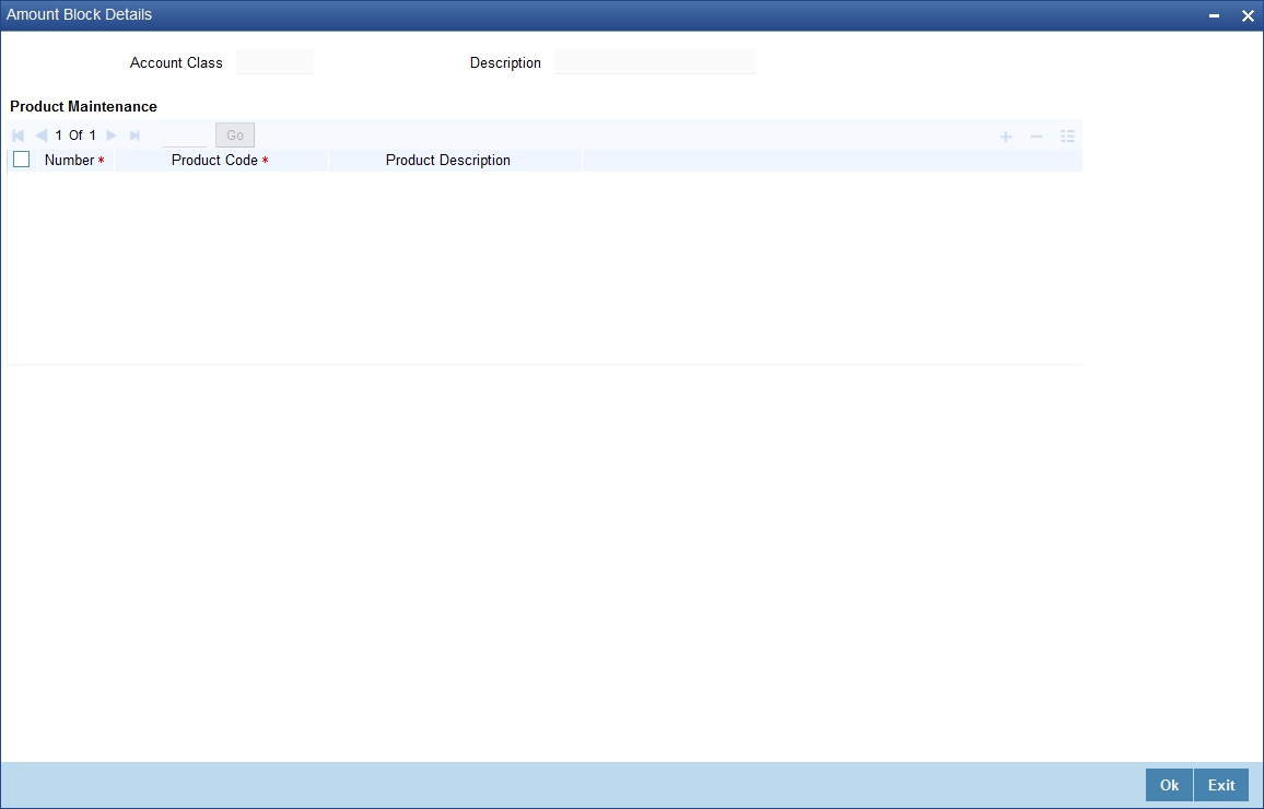 For instance, let us assume you are defining a class for deposit account of individuals. You could associate the code DEP IND with it. Similarly, the description that you associate with it could be something like this – ‘Deposit accounts of individuals’.