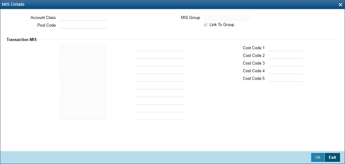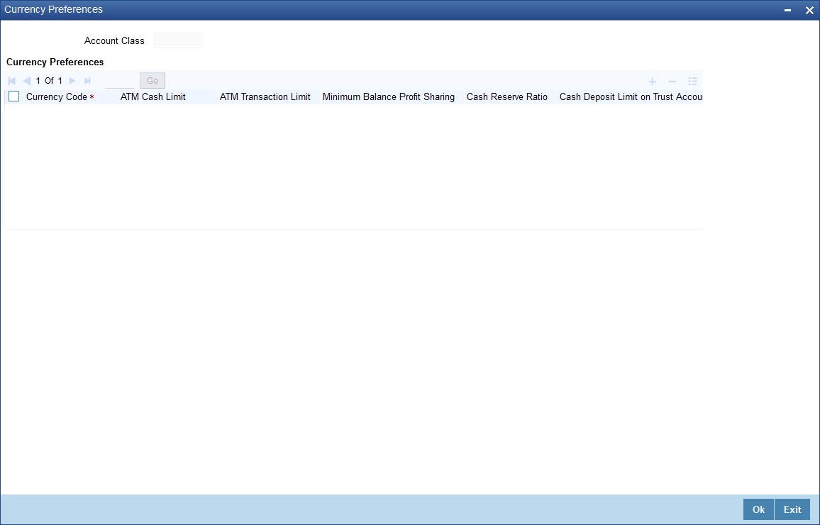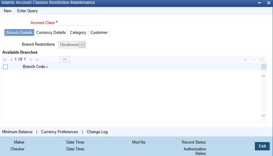 As per your bank’s requirement you can choose to classify Islamic account class into different account codes. The bank can decide the manner in which the account classes are to be assigned to different account codes. An account code can consist of a maximum of four characters.