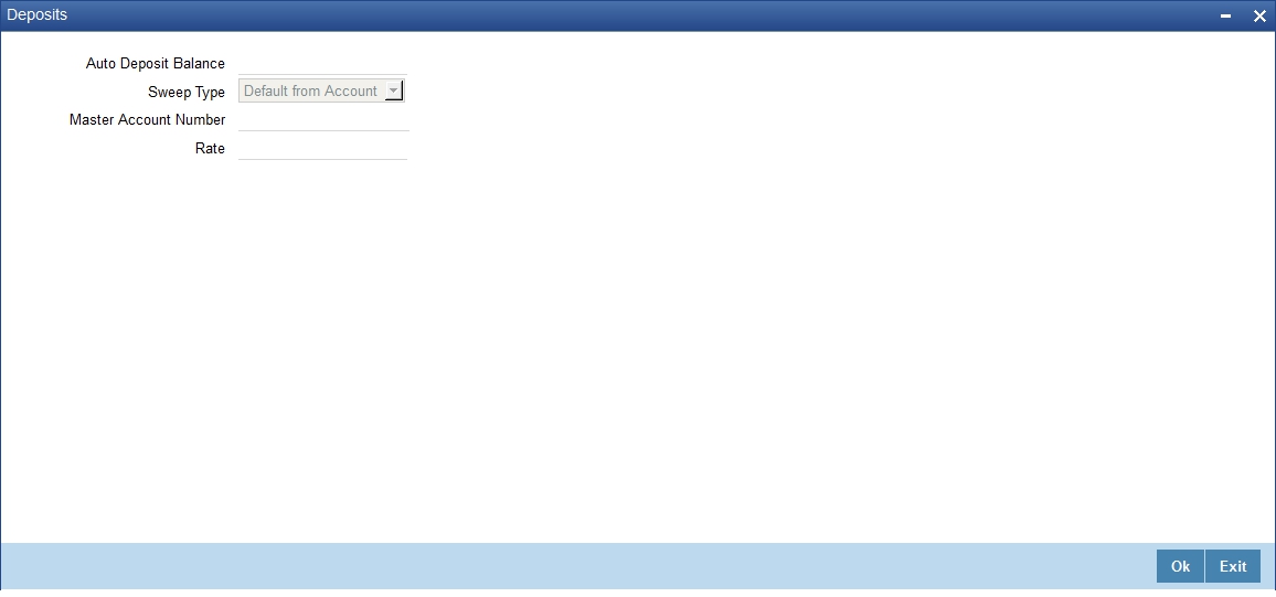 By default the account type is ‘Deposit’. You will not be able to modify this option.