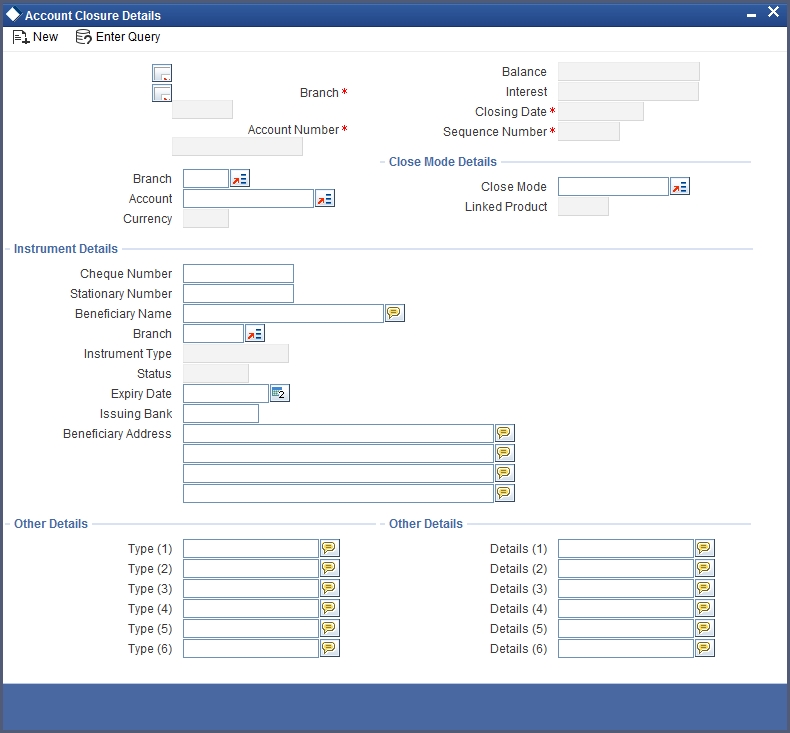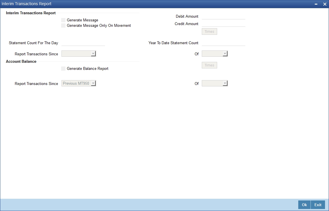 In the above screen, you can base your queries on the following parameters and fetch records: