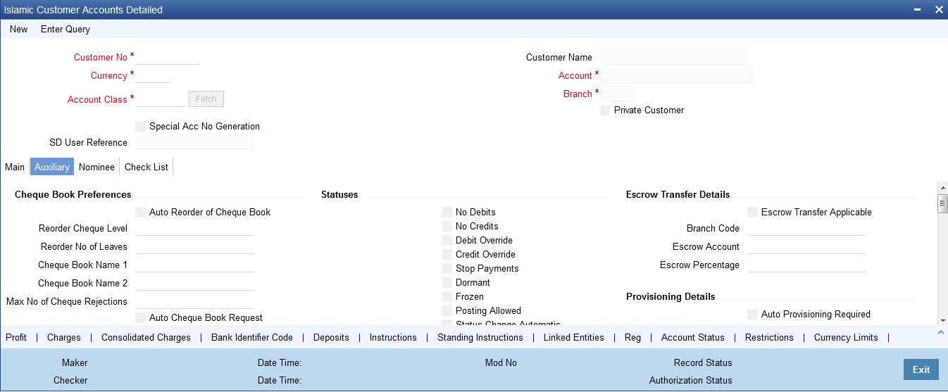 Depending on the customer account mask maintained, the value in the account code field would be used during the generation of customer account numbers through the ‘Islamic Customer Accounts Maintenance’ screen.