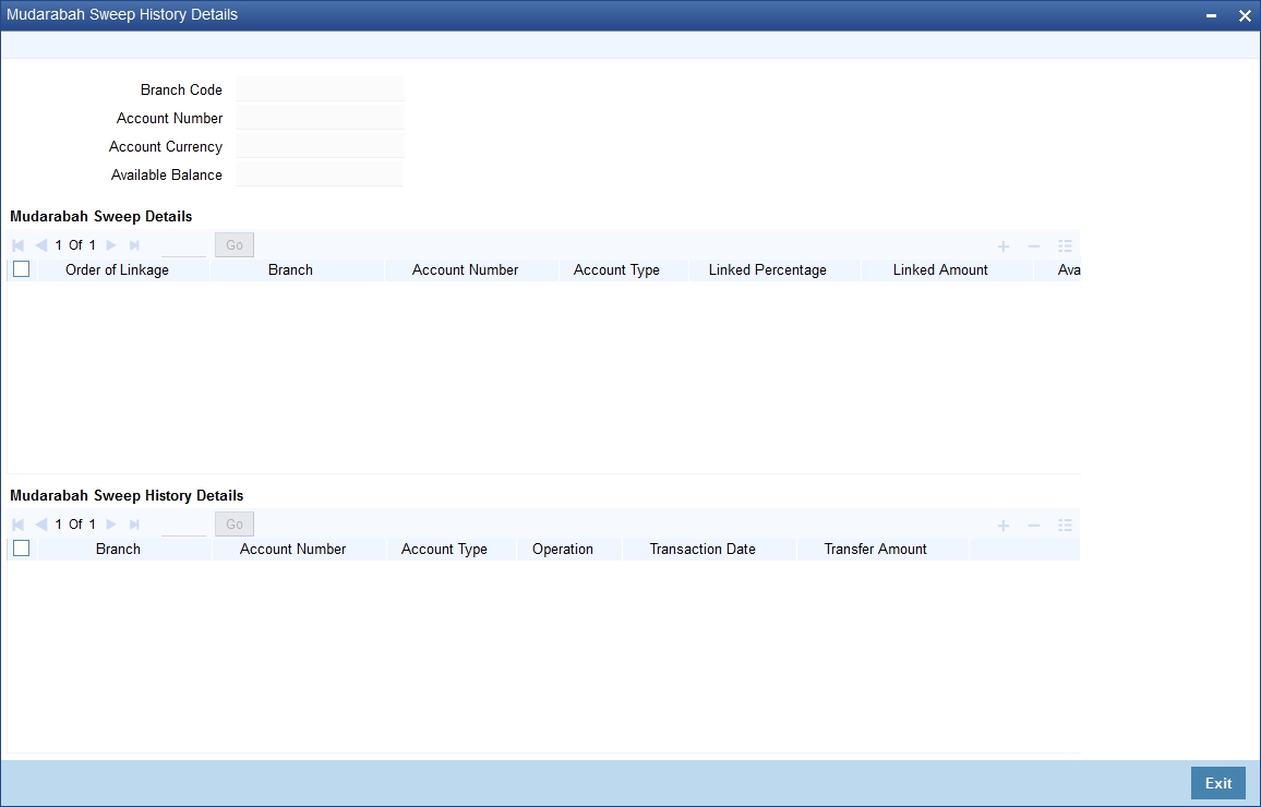 If the Mudarabah Sweep detail is checked then the system displays the following sweep history for the customer account:
