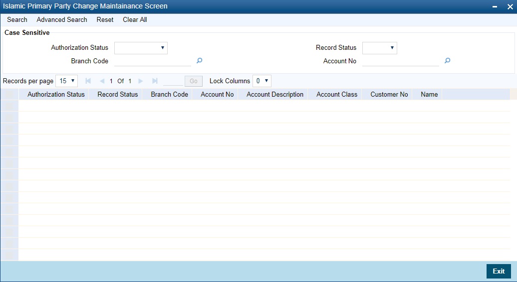 You can view a summary of Islamic account primary party changes made in the system using ‘Islamic Primary Party Change Maintenance Summary’ screen. To invoke this screen, type ‘IASCUSCH’ in the field at the top right corner of the application toolbar and click the adjoining arrow button.