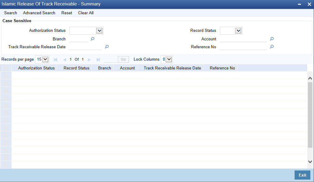 You can view the release of track receivables details maintained in the Release of Track Receivable Summary screen. You can invoke this screen by typing ‘IASTRKRL’ in the field in the top right hand corner of the application toolbar and clicking on the adjoining arrow button.