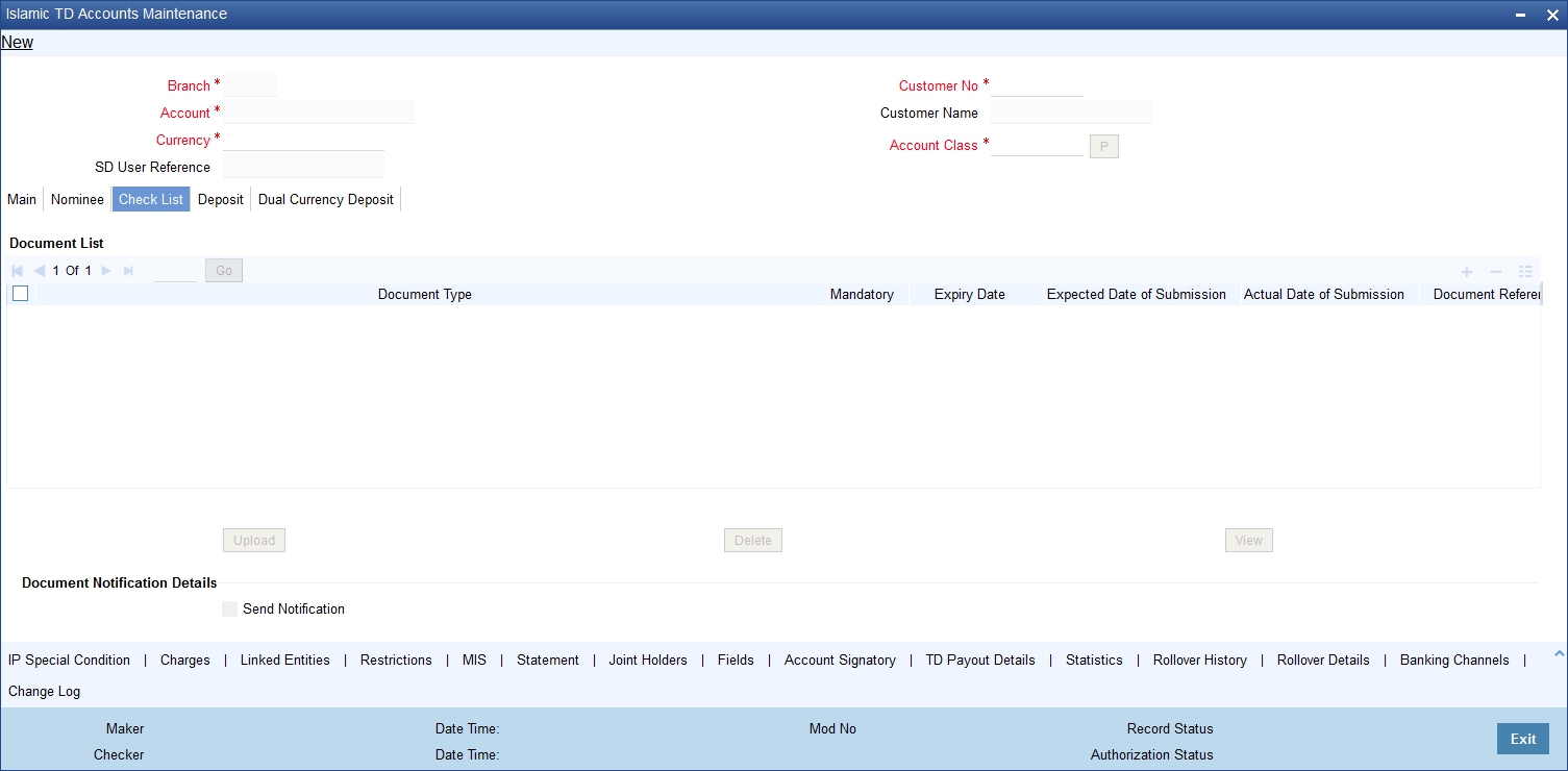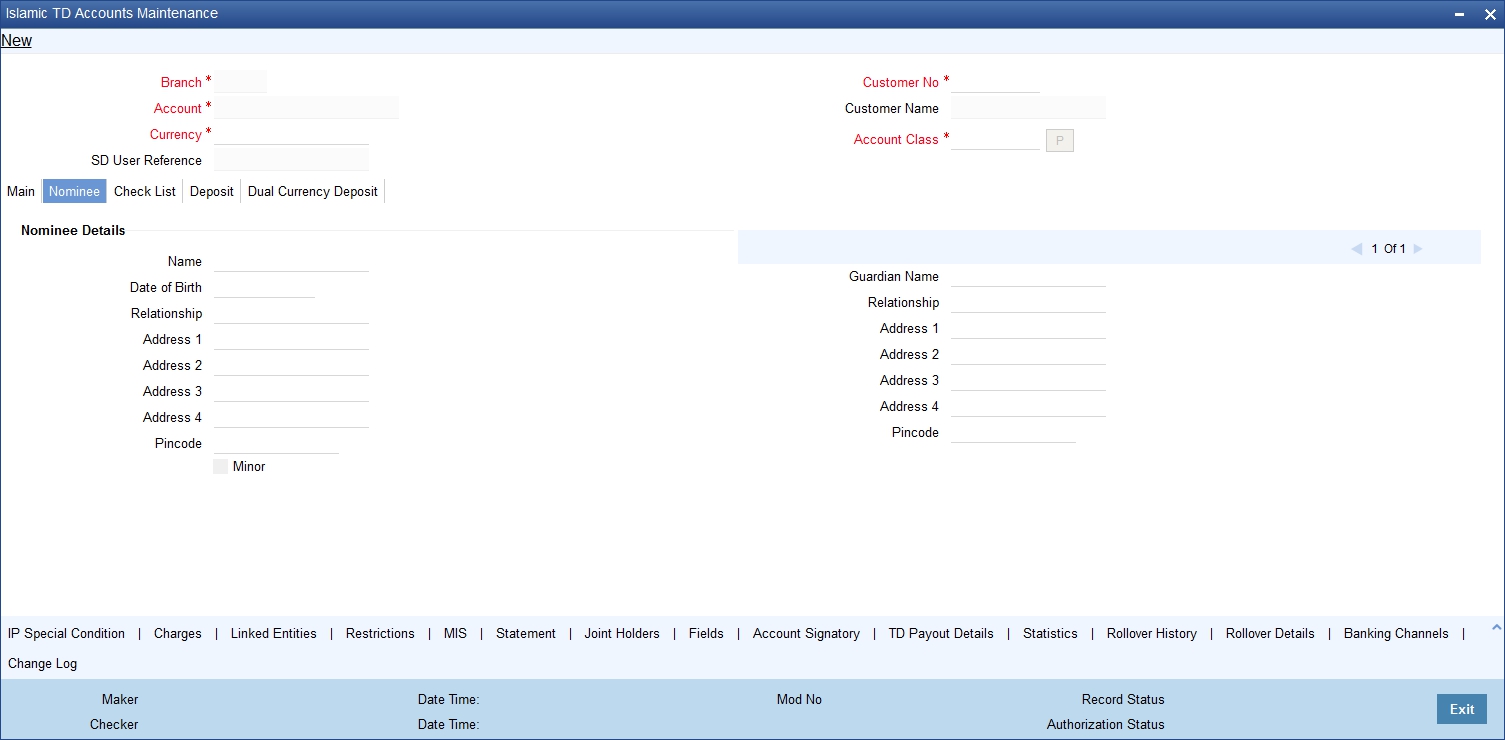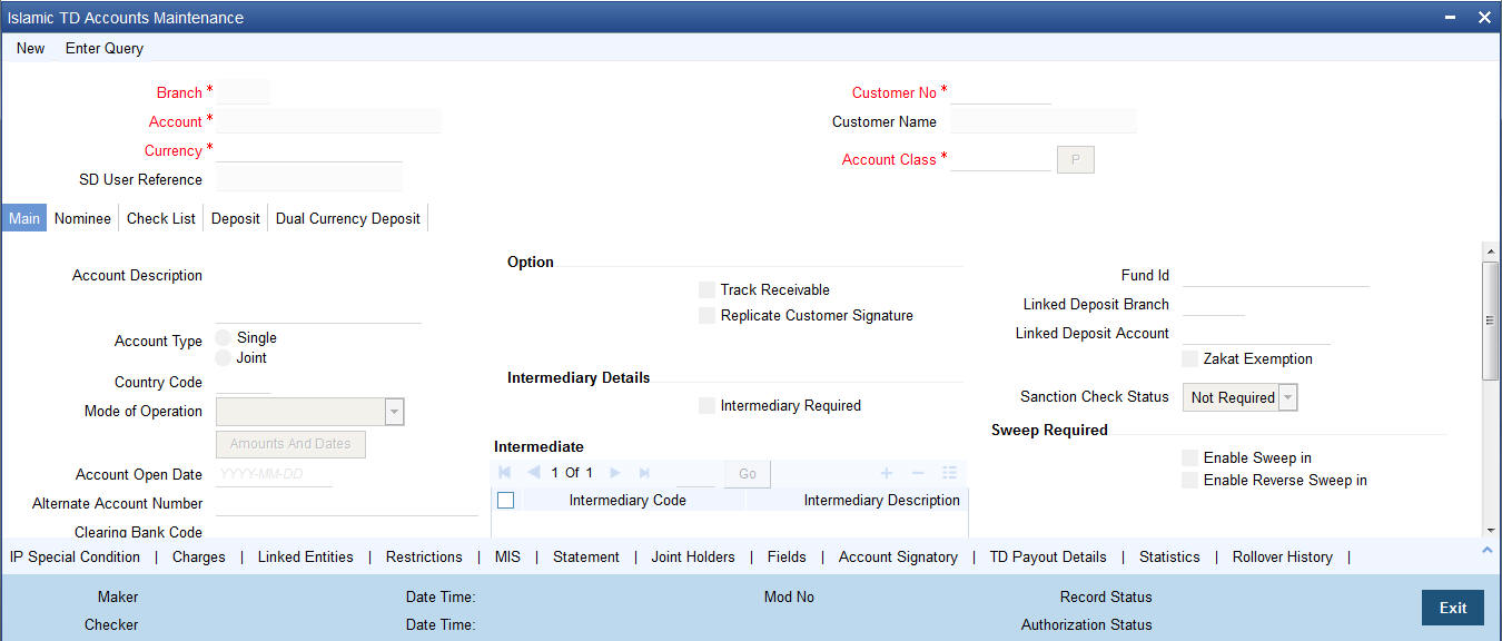 Additionally, you need to maintain the following details for operating a Term Deposit (TD):
