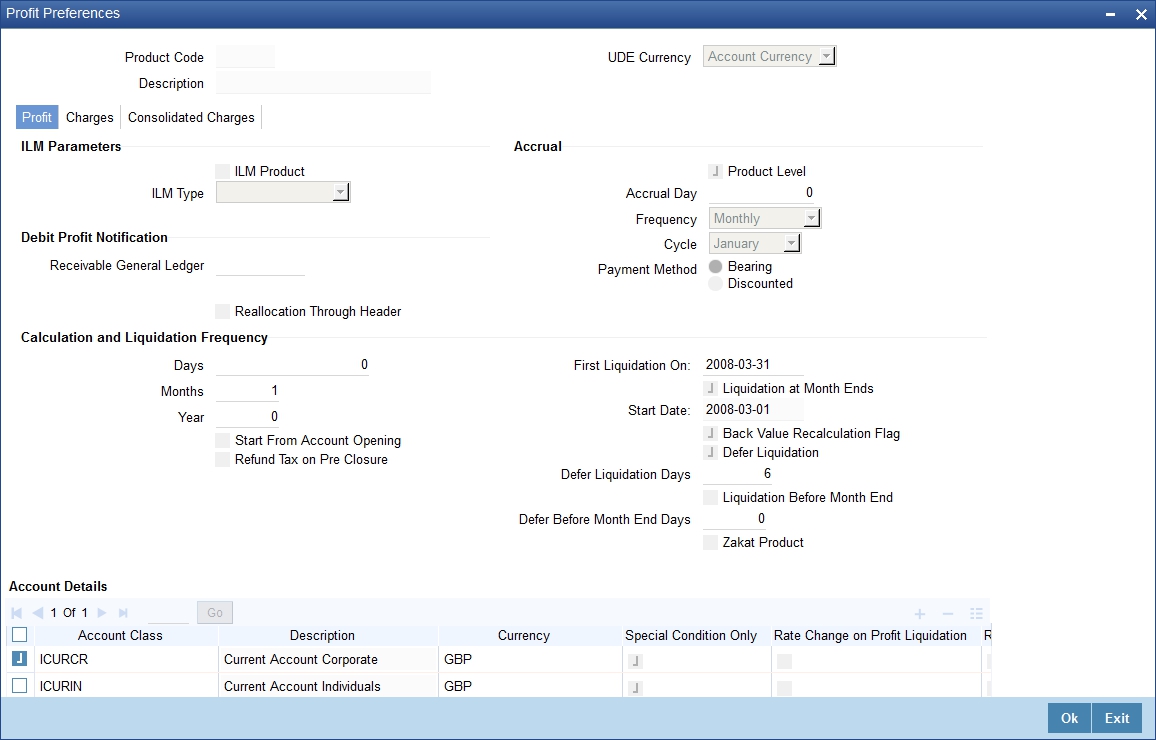 Refer the section ‘Maintaining Islamic Account Class’ in the chapter ‘Creating Islamic Accounts’ of this User Manual for details about setting up an account class.