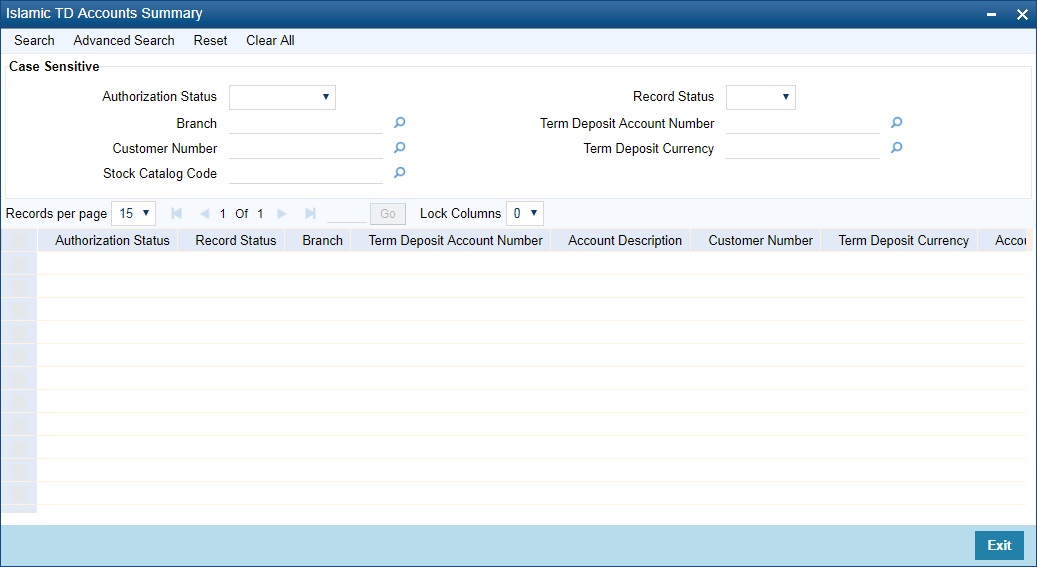 Click ‘Search’ button. The system identifies all records satisfying the specified criteria and displays the following details for each one of them: