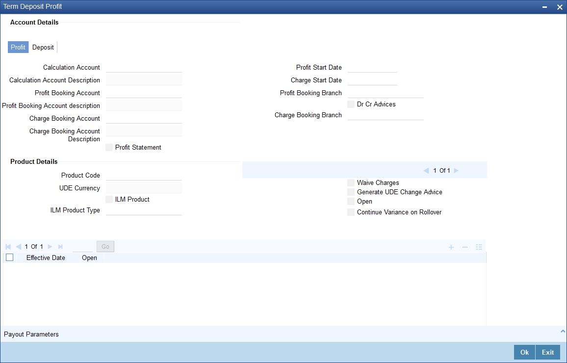 All TDs created under this account class will inherit the profit parameters maintained in this screen.