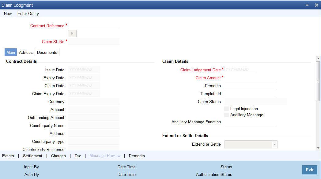 You can settle guarantee claims using the ‘Claim Settlement’ screen. Claims have to be settled in the sequence it is lodged. All claims in Lodged Status will be available for settlement.