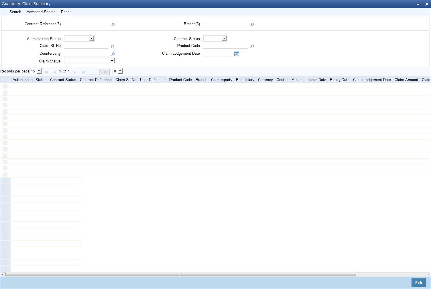 You can view the guarantee claim details maintained in the ‘Guarantee Claim Lodging’ screen using the ‘Guarantee Claim Summary’ screen. You can invoke this screen by typing ‘LCSGCLM’ in the field at the top right corner of the Application tool bar and clicking on the adjoining arrow button.