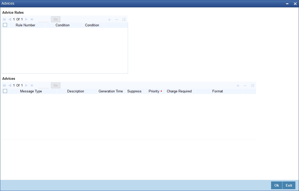 Select ‘Y’ or ‘N’ from the adjoining drop-down list to either suppress or allow the generation of some advices.