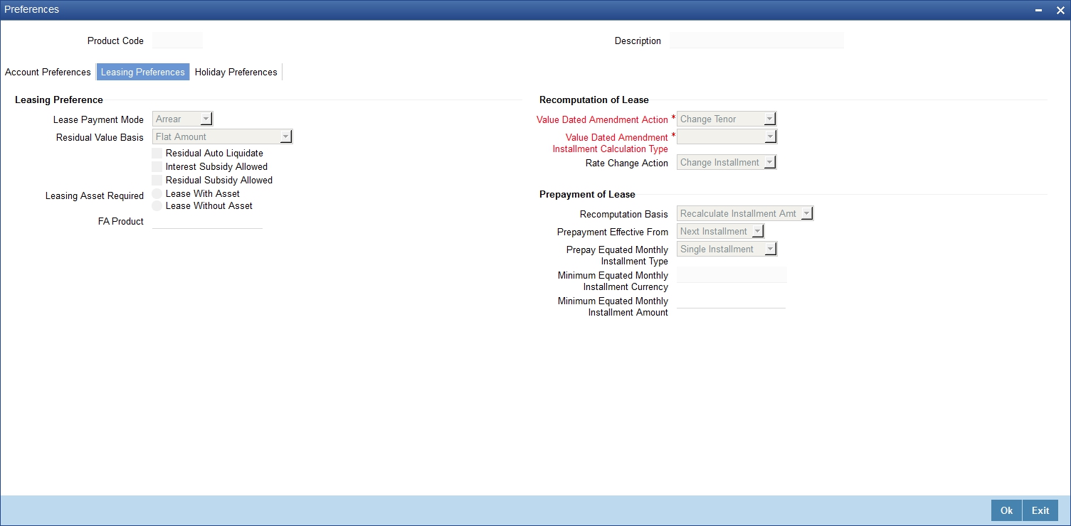 Preferences are the options that are available to you for defining the attributes of a lease product. These could be: