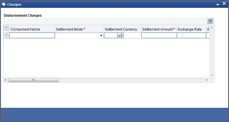If a formula is maintained for charge calculation at the product level, the system calculates the charge on the amount being disbursed using the formula. The same is then displayed in the here.