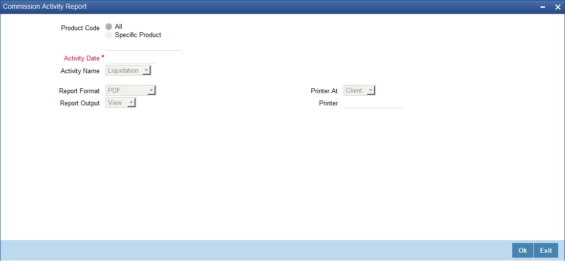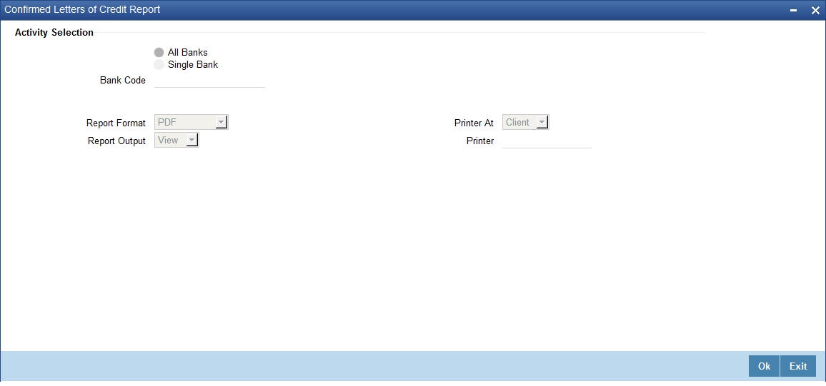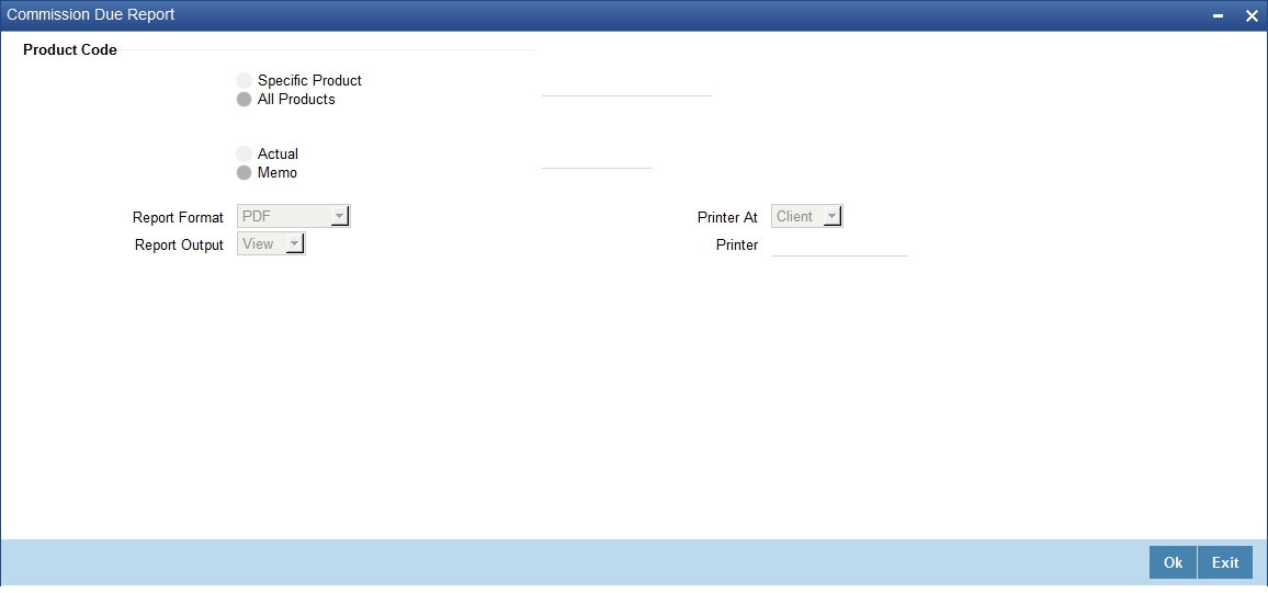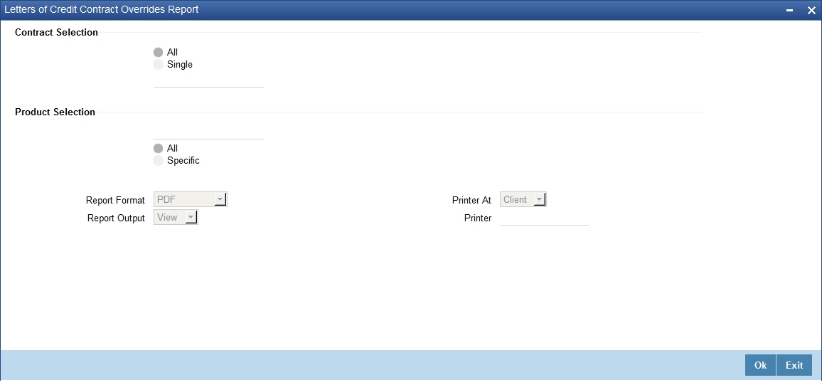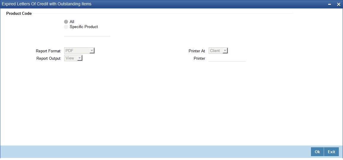 You can specify that the report should contain details of expired LCs associated with all LC products or a specific product. To generate the report for a specific product, select the appropriate Product Code from the option list.