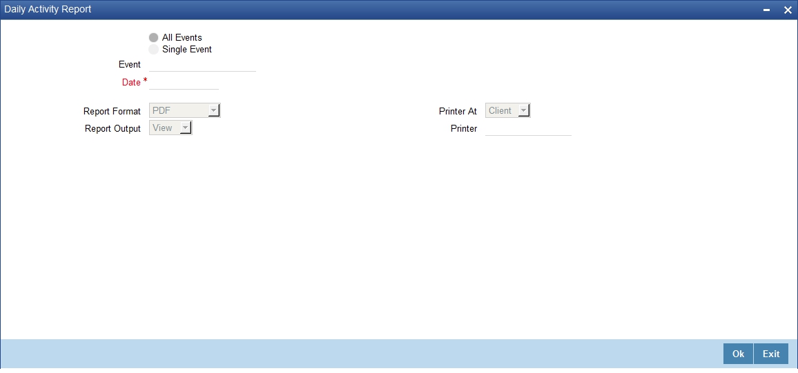 You can configure this report to be triggered automatically as part of the batch processes run at EOD. You can also generate the report at any time in the day from the Reports menu.