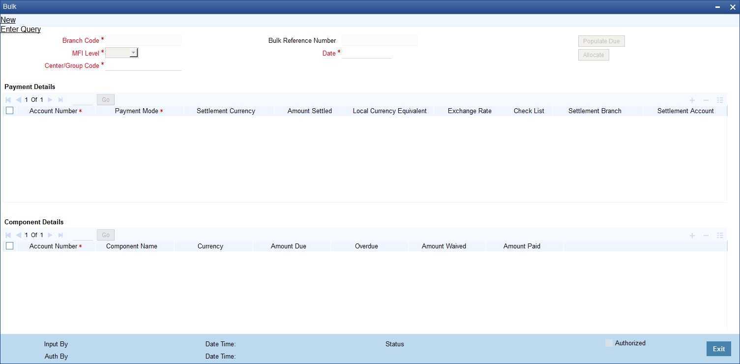 On saving a manual payment towards a microfinance component (s), the online liquidation against each such component follows the order of liquidation as specified through the ‘Component Liquidation Order’ screen.