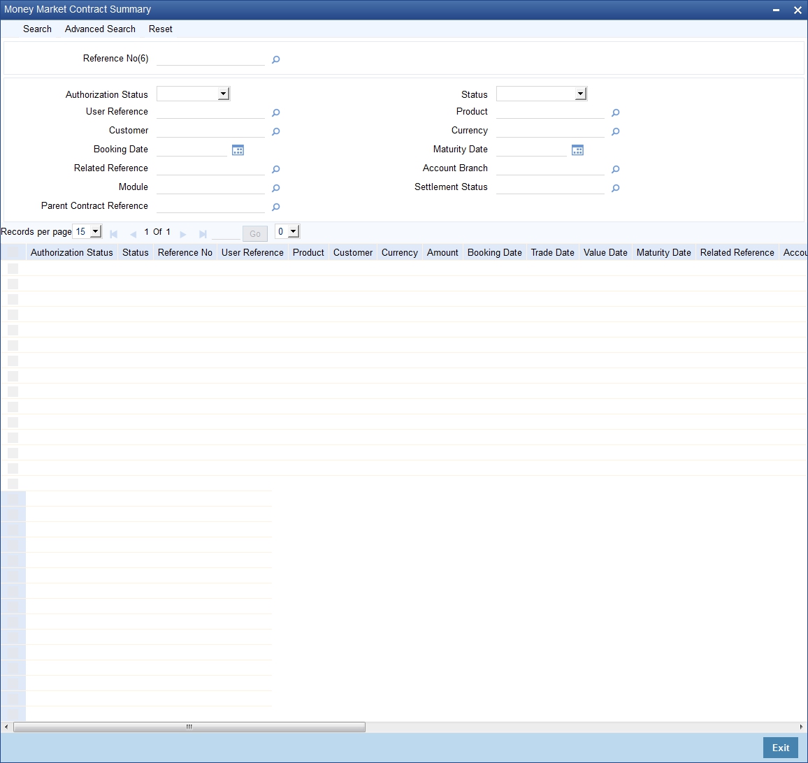 Money market deals must be authorized in the respective Contract Online screens. This method of authorizing the deals can be quite cumbersome, especially if the volume of transactions is large. In view of that, Oracle FLEXCUBE allows bulk authorization of all unauthorized money market deals from the ‘Unauthorized Contracts’ screen. Invoke this screen from the Application Browser.