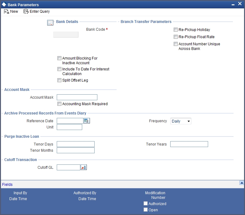 Inactive mortgages can be deleted even after the authorisation of Inactive mortgage account. In Bank Parameters, Site specific parameters are provided to control the automatic deletion of Inactive mortgages. An Inactive Mortgage processing supports this deletion.