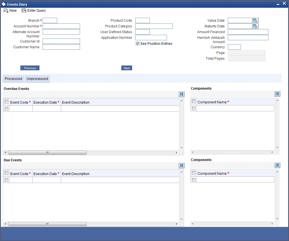 Refer the section ‘Events Diary’ in the chapter titled ‘Account Creation’ in this User Manual for details about the ‘Events Diary’ screen.