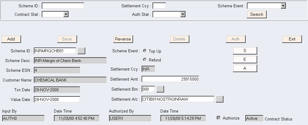 In this screen, firstly you have to specify the ID of the margin scheme that is to be linked with the margin transaction. The other details about the Margin Scheme such as: