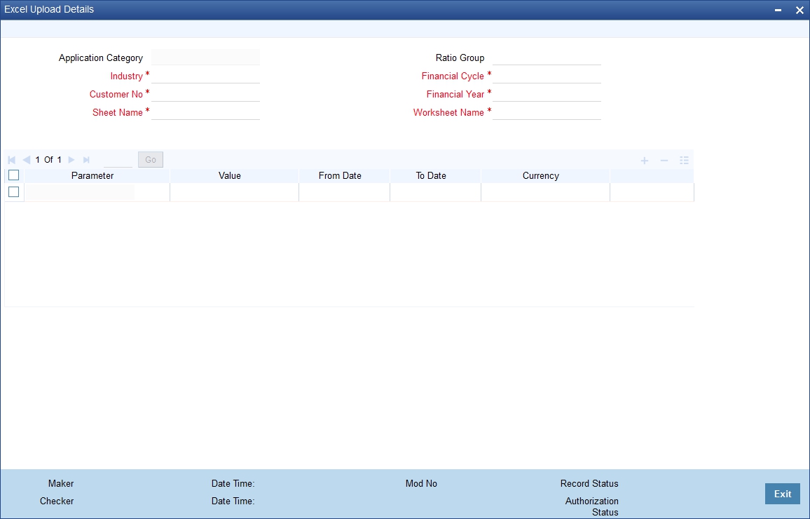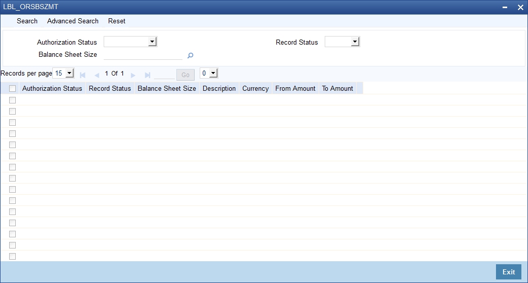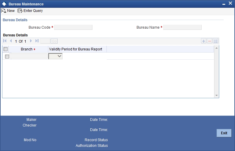 You can view a summary of the credit ratios in ‘Credit Ratio Maintenance’ screen. You can also query for a particular record based on desired search criteria.