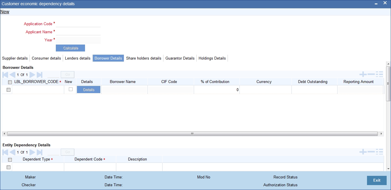 Check this box if the borrower code maintained in the borrower code field is a new borrower code which is not already maintained in the ‘Entity Details Maintenance’ (ORDENTYM) screen.