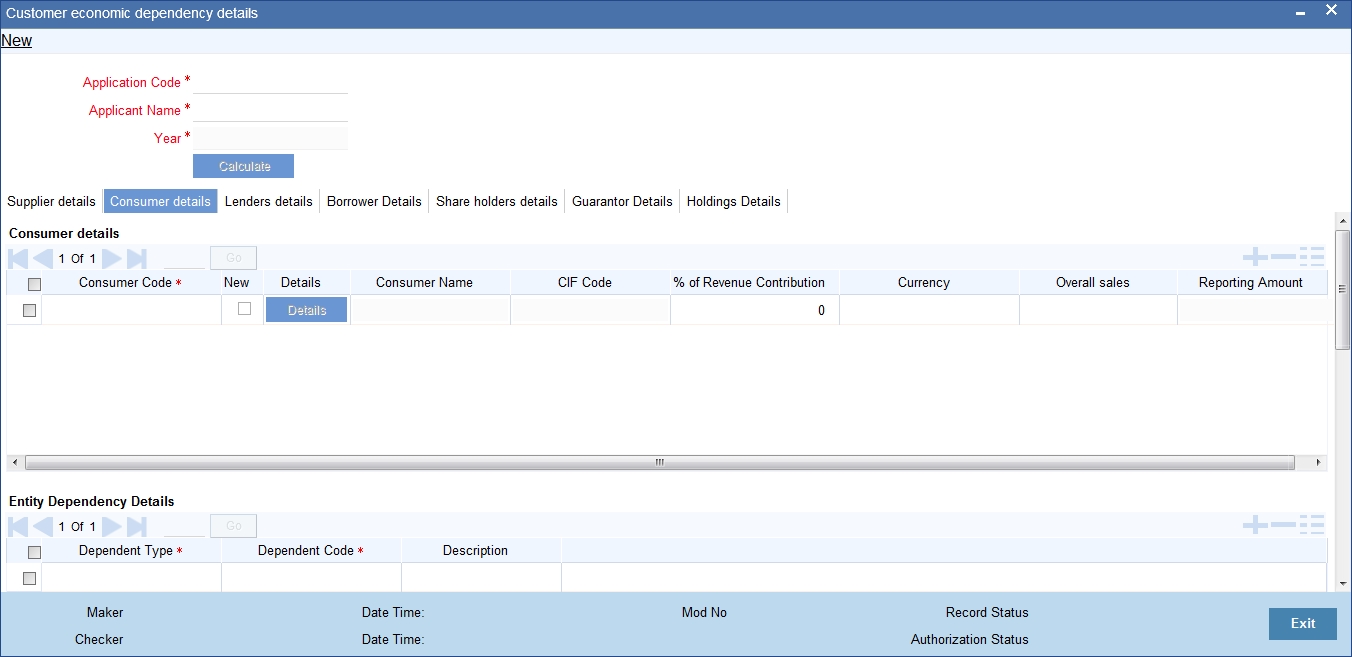 Select the consumer code as maintained in the ‘Entity Details Maintenance’ (ORDENTYM) screen. You can alternatively specify a new consumer code which is not already maintained in the ‘Entity Details Maintenance’ screen.