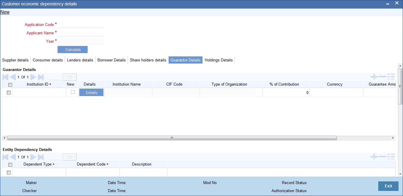 In this tab list of organizations that are providing guarantee to the customer who has requested a facility is maintained.