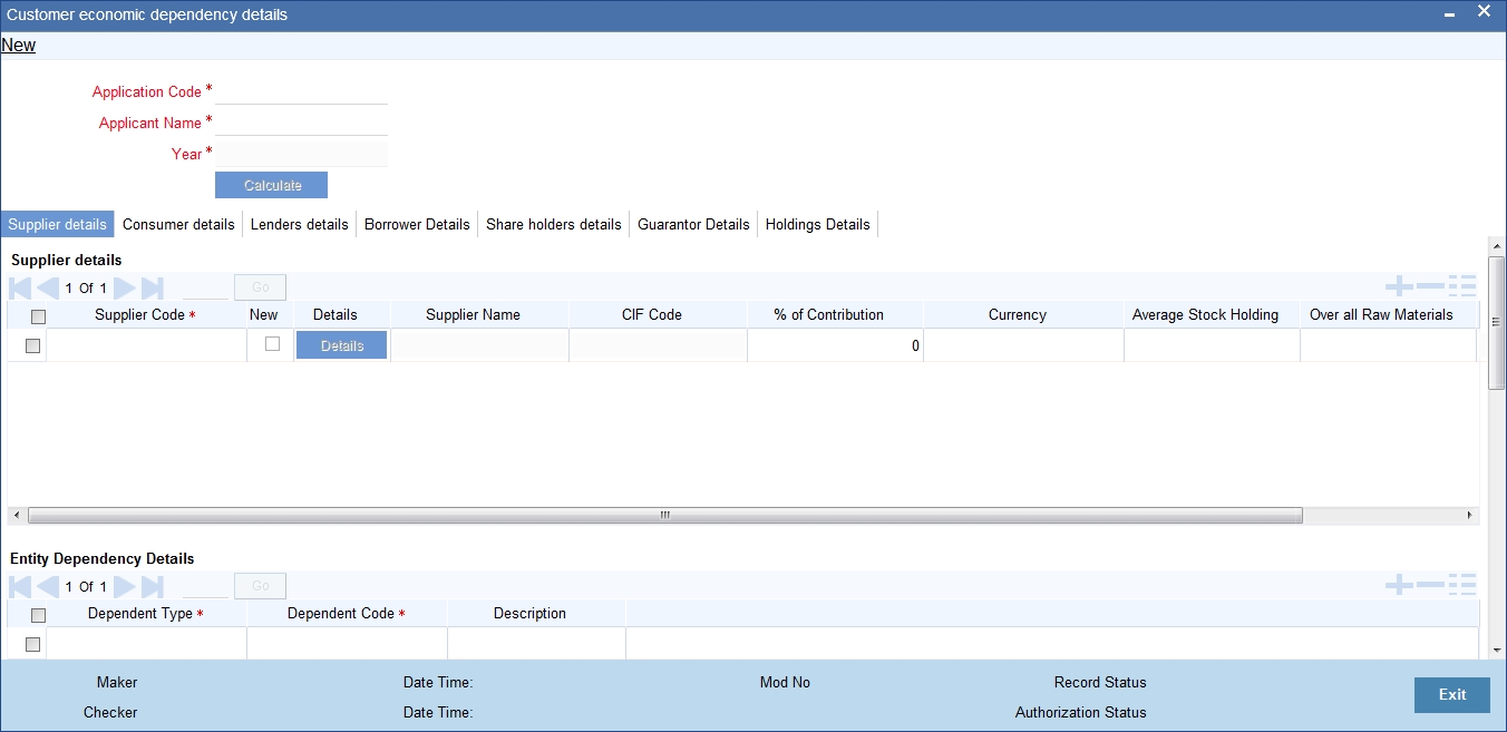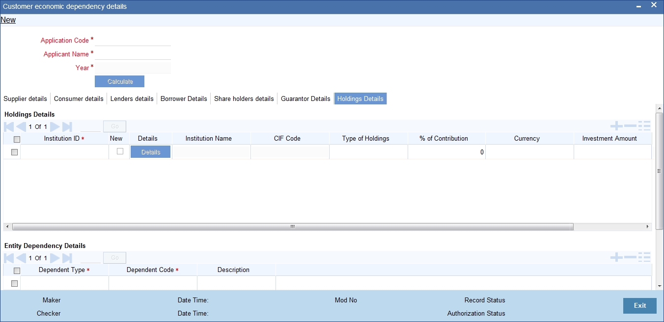 If ‘New’ check box is selected, then on clicking the’ Details’ button the ‘Entity Details Maintenance’ (ORDENTYM) screen is displayed, where further details of the new lender is to be maintained. For more information on maintaining these details, refer to the section Maintaining Entity Details in this User Manual.