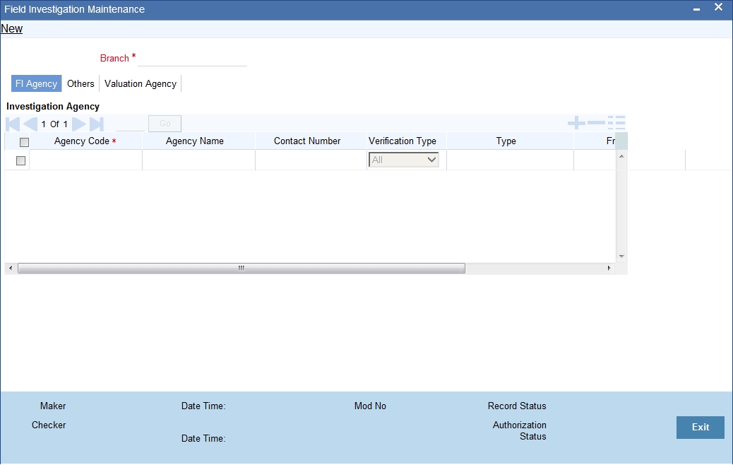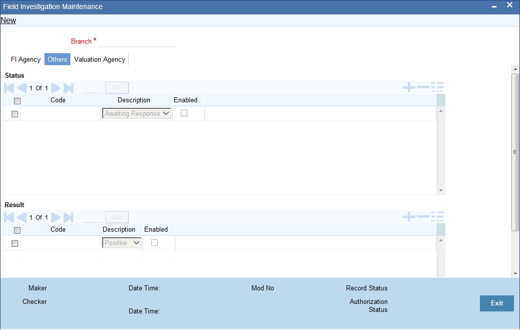 Select the Institution ID code as maintained in the ‘Entity Details Maintenance’ (ORDENTYM) screen. You can alternatively specify a new Institution ID code which is not maintained in the ‘Entity Details Maintenance’ screen.