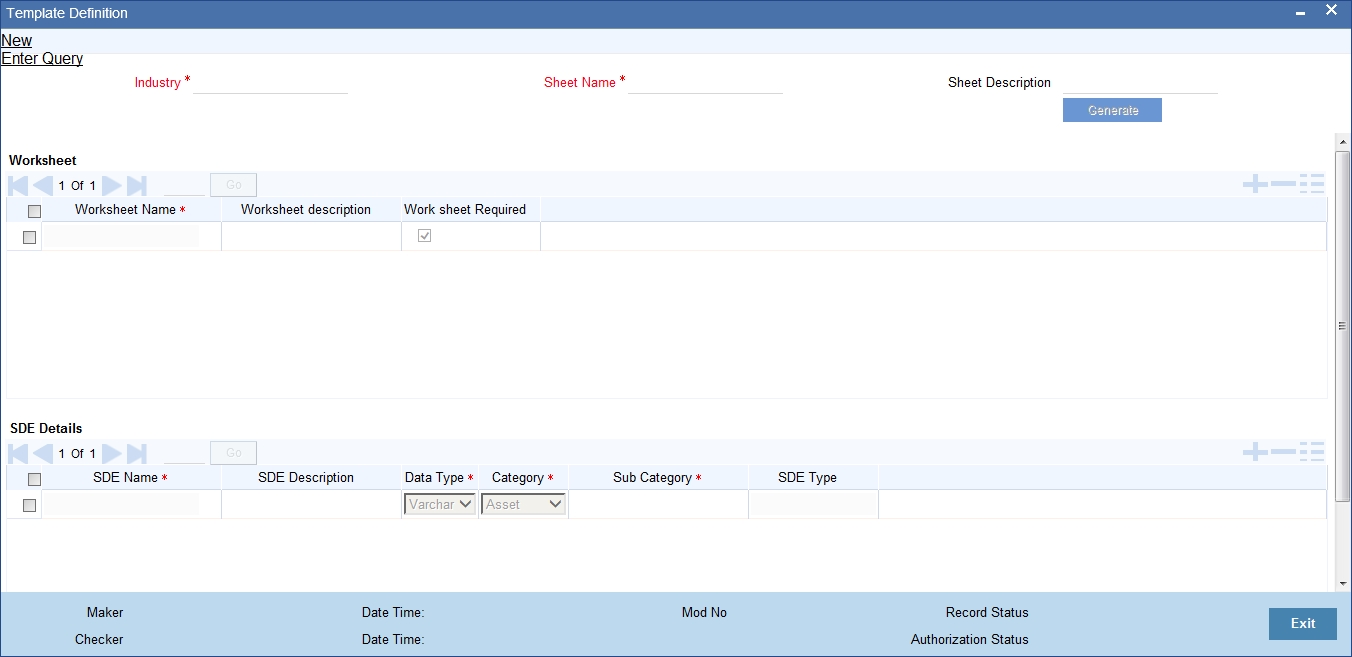 Click the ‘Generate’ button to view an excel sheet, which is generated on the basis of the System Data Elements (SDE) maintained in the system.