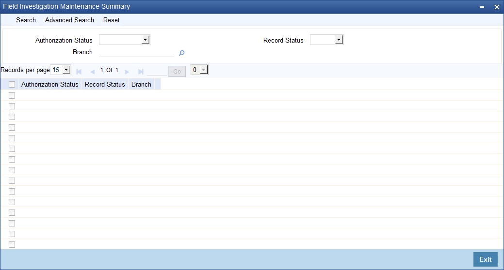 Click ‘Search’ button to search for a record based on the search criteria specified. You can double click a desired record to view the detailed screen.