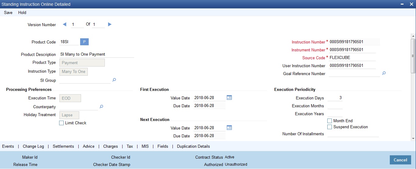 No accounting entries and advices will be generated for a contract on Hold and the incomplete contract details will remain in the system. When all the details of the contract are available, you can lift the Hold status on the contract and process it like any other contract.