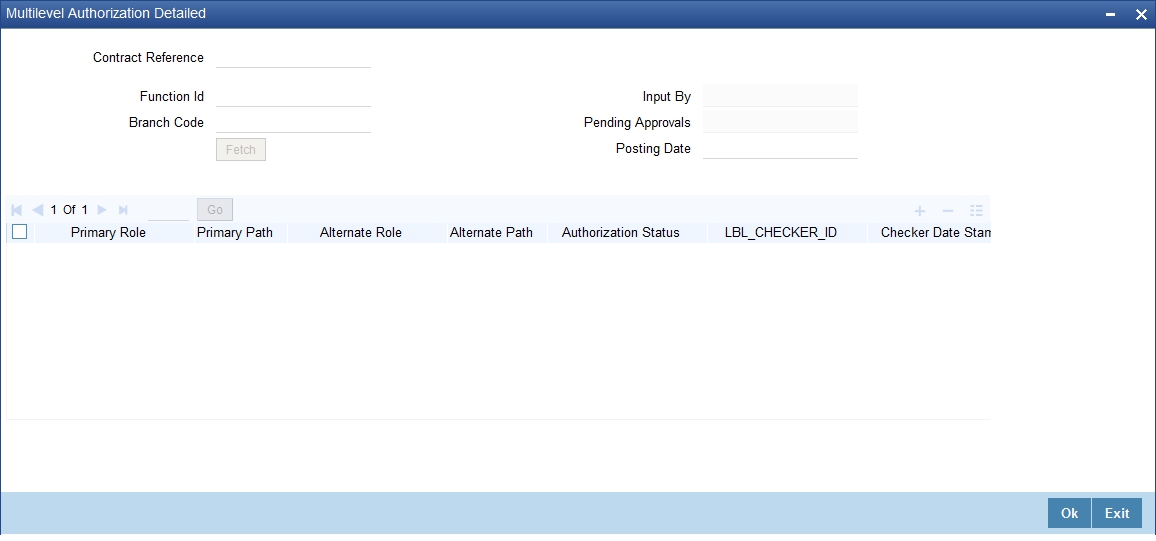 Specify the query parameters and click ‘Fetch’ button. The records meeting the query criteria are displayed in the lower grid.