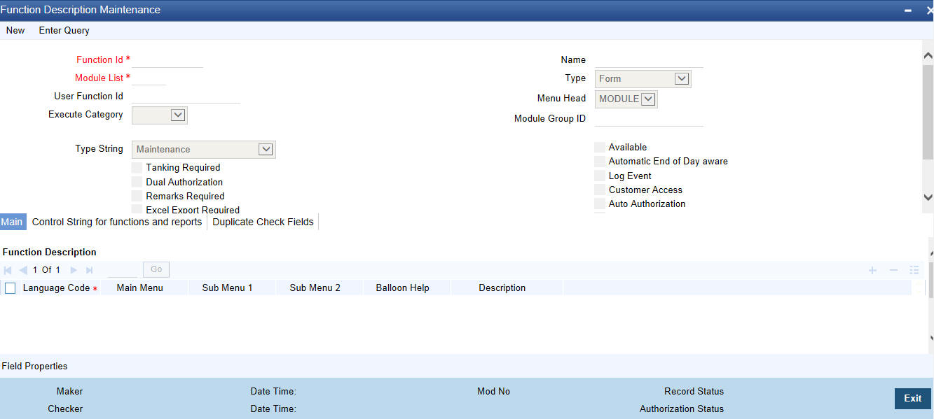 You can go to the Summary View by highlighting the module name in the Application Browser; all the functions associated with that module will be displayed in an adjoining box. Similarly highlight a function, the options (Detailed or Summary) available for the particular function will be displayed in an adjacent box. Click on Summary, the ‘Summary View’ screen is displayed.