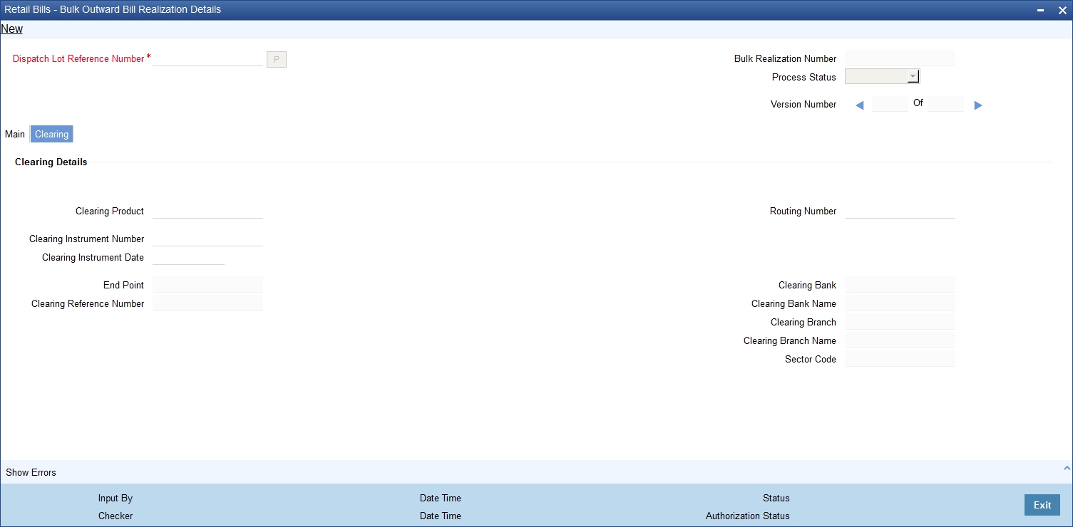 The ‘Retail Bills-Outward Dispatch Process’ screen is used to initiate a batch process which marks the outward instruments that are due for dispatch on a specific date as dispatched.