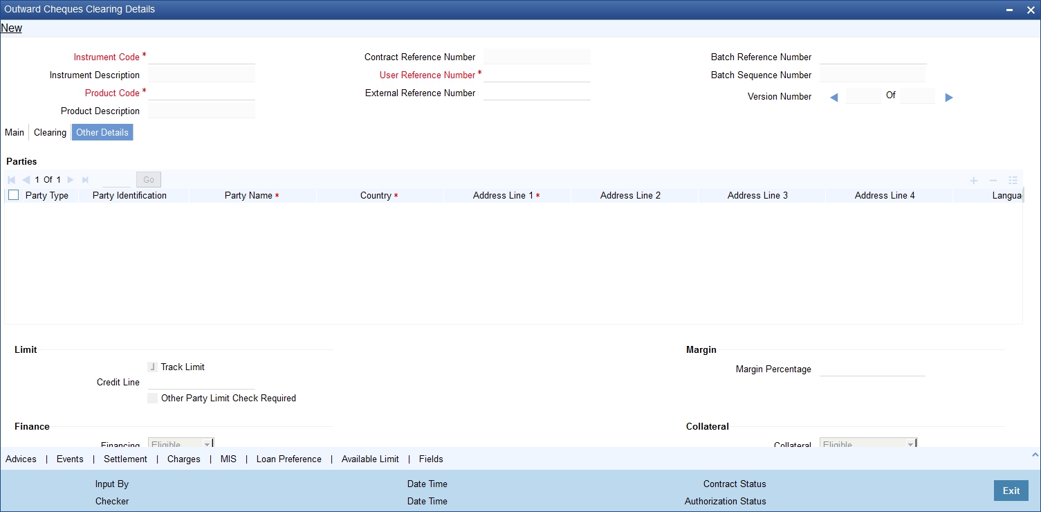 If the activation date of an instrument that is associated with the product type ‘Outward Cheque for Clearing’ is less than or equal to the current system date, then you can generate the clearing contract. It is mandatory that the instrument has not been realised, closed or returned.