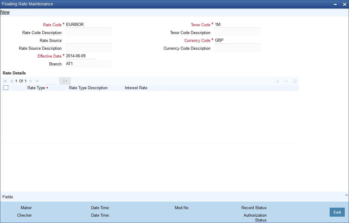 If you are calling a record that has already been created, click on Summary view. From the Summary screen you can open an existing record. Highlight the record you wish to view and double click on it. The details of the bank parameter record will be displayed in a tabular form.