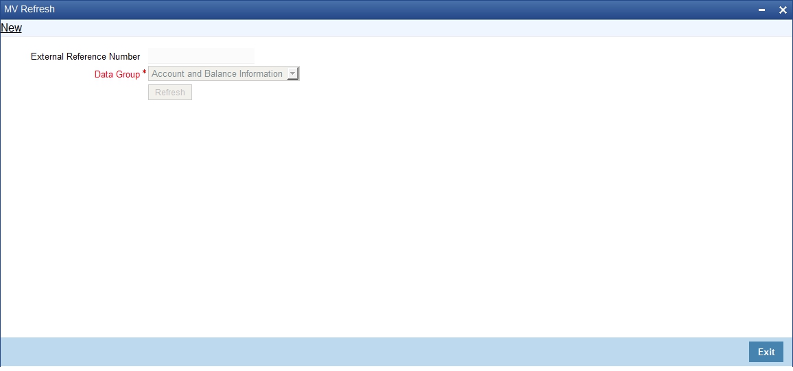 You can replicate records from Host to Branch manually on an ad-hoc basis using the 'MV Refresh' screen. You can invoke this screen by typing 'MREF’ in the field at the top right corner of the Application tool bar and clicking on the adjoining arrow button.