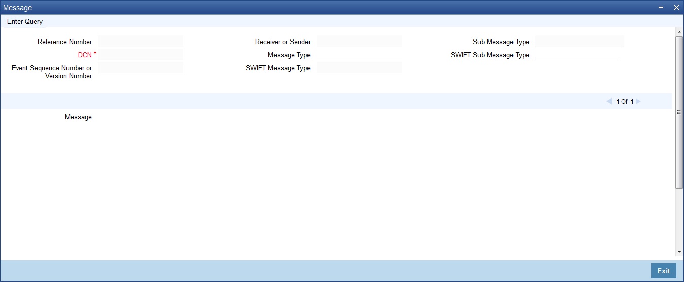 You can preview the advice/message generated for the Inter-Branch Transaction Request using ‘Message’ screen. To invoke this screen, click ‘Message’ button.
