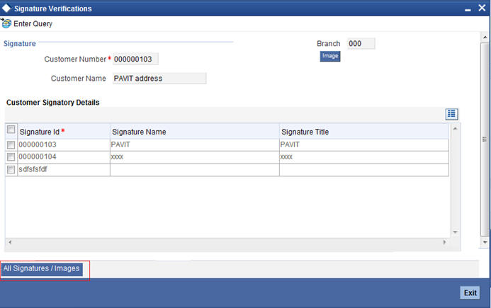 Click ‘All Signatures/Images’ button to view ‘Customer Signature/Image Consolidated View’ screen.