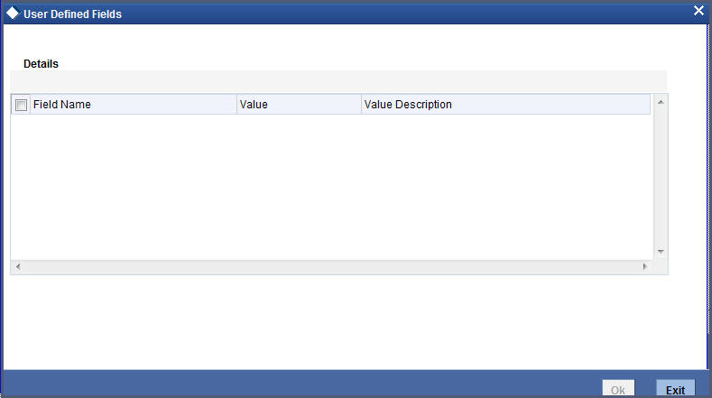 You can specify values for all user-defined fields (UDFs) linked to the function ID, in the ‘User defined Fields’ screen.