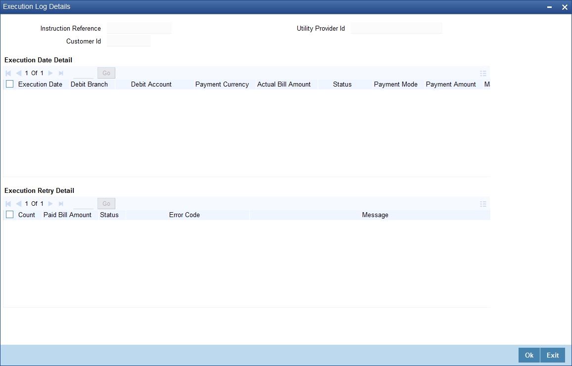 Click ‘Execution Log’ button and invoke the ‘Execution Log Details’ screen.