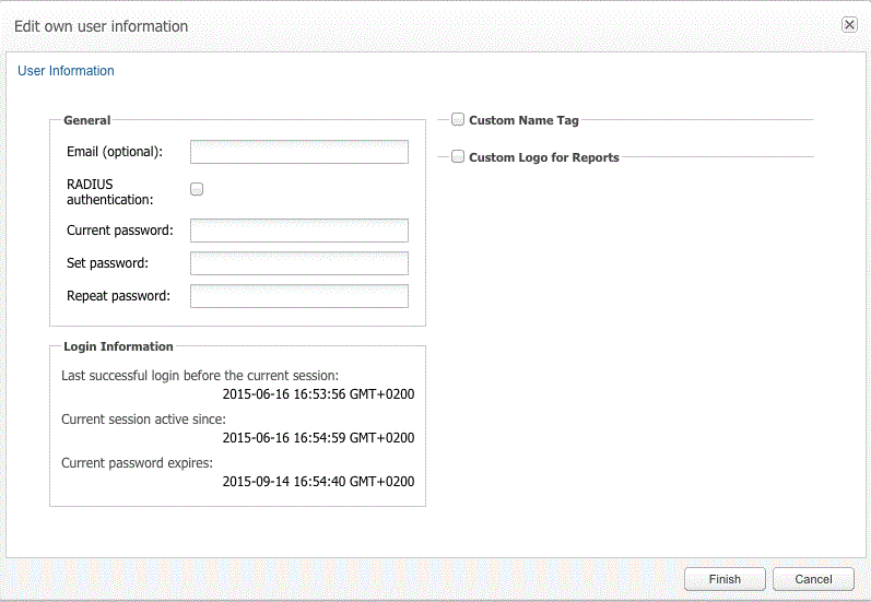 The Edit own user information dialog box