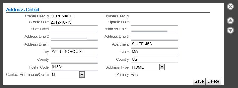 • If you delete address lines 2-4 or apartment in Order Management System, these address lines are also deleted in Oracle Retail Customer Engagement.